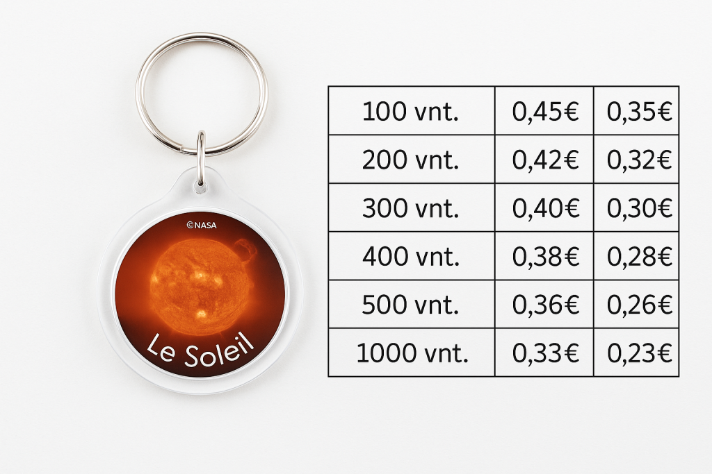 Gaminame firminius raktų pakabukus su jūsų logotipu ar dizainu – praktiškas, ilgalaikis ir nuolat matomas atributas. Puikiai tinka verslo dovanoms, reklaminėms kampanijoms, renginiams ar prekės ženklo populiarinimui.